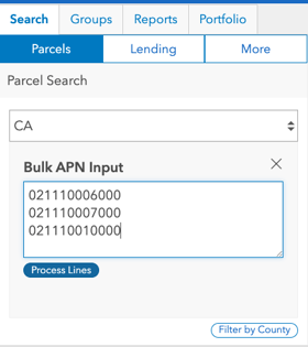 - Find the parcels you are looking for by conducting a Parcel Search. You can either search for parcels individually or perform a bulk APN search.