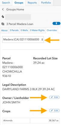 Edit and/or add details to your parcel group to gain even greater insights into loan collateral.