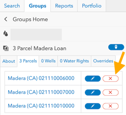 - Click on the red "X" icon to remove a parcel from the parcel group