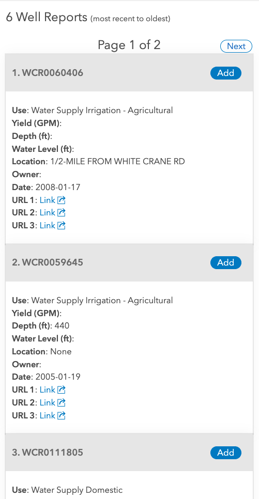 Tip: If there are multiple pages of wells make sure to use the Next and Prev buttons to view information on all wells in the vicinity!