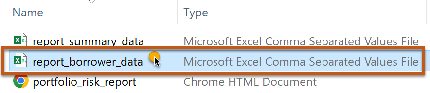 - Portfolio CSV labeled "report_borrower_data" (in zip file folder delivered with the Portfolio PDF Report)