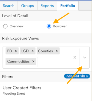 - Select Borrower as your Level of Detail and edit your Risk Exposure Views to add or remove any details you'd like to see in the output